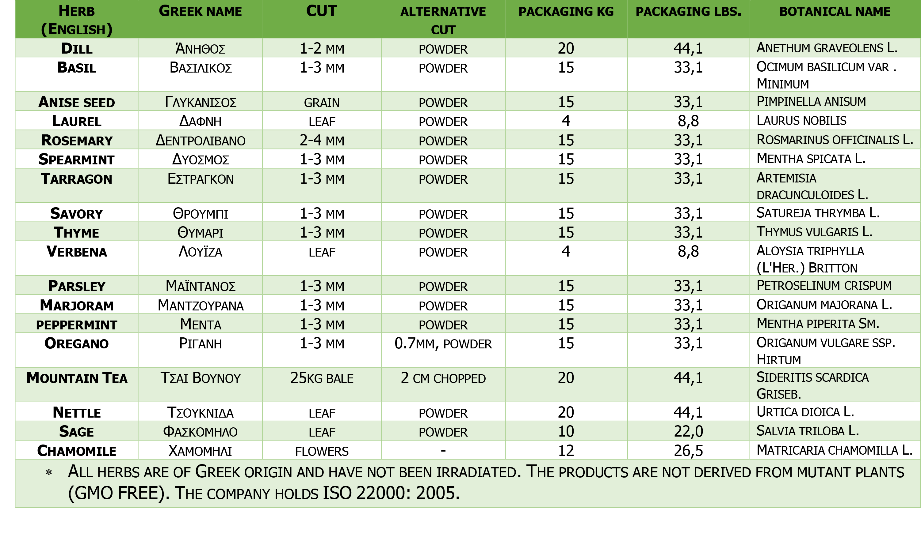 Our herbs can be used in the production of single ingredient extracts (ml/100gr) due to the high concentration in oils and the absence of contaminants.